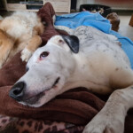 Die Katzen im Haus lässt sie größtenteils in Ruhe, liebt es aber, sie abzuschnuppern und abzulecken. Sie kann aber auch mit den Katzen gemeinsam auf dem Bett schlafen und ihr Waschprogramm einstellen. Ein souveräner Ersthund würde Stelle die Eingewöhnung sicher sehr erleichtern. Sie ist wirklich ein ganz bezauberndes Punktedings …“